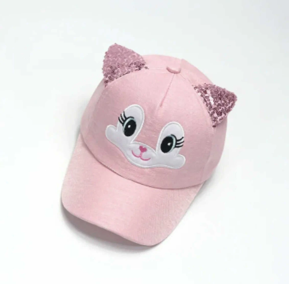 Dětská 3D kšiltovka třpytivá kočička - RŮŽOVÁ (3-7 let)