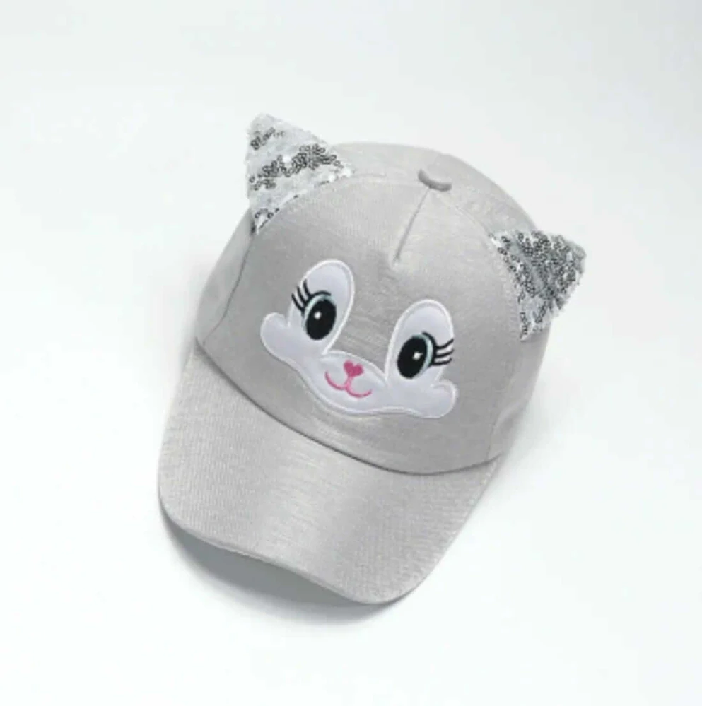 Dětská 3D kšiltovka třpytivá kočička - ŠEDÁ (3-7 let)