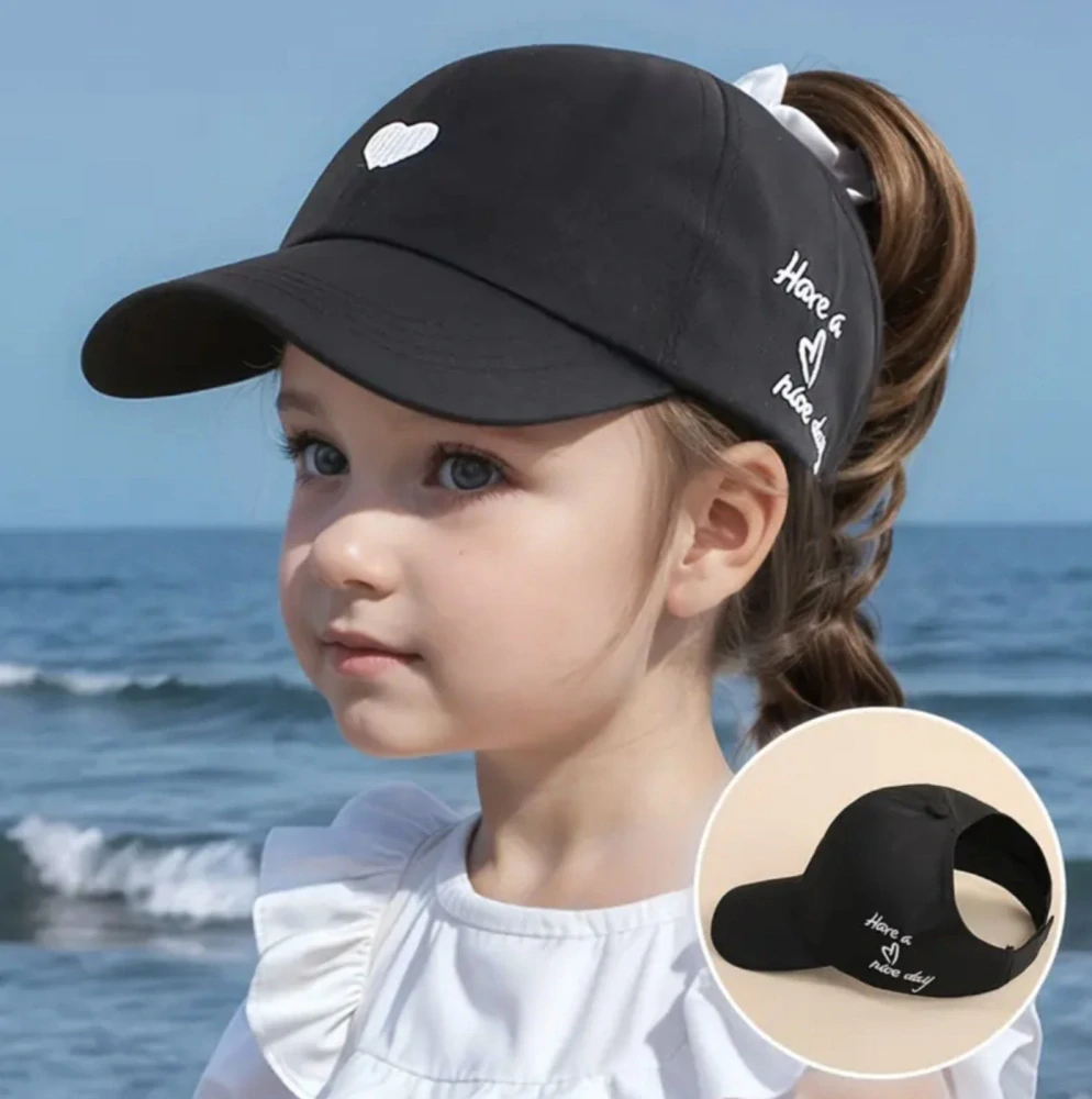 Dětská letní kšiltovka s otvorem pro culík - ČERNÁ (3-7 let)