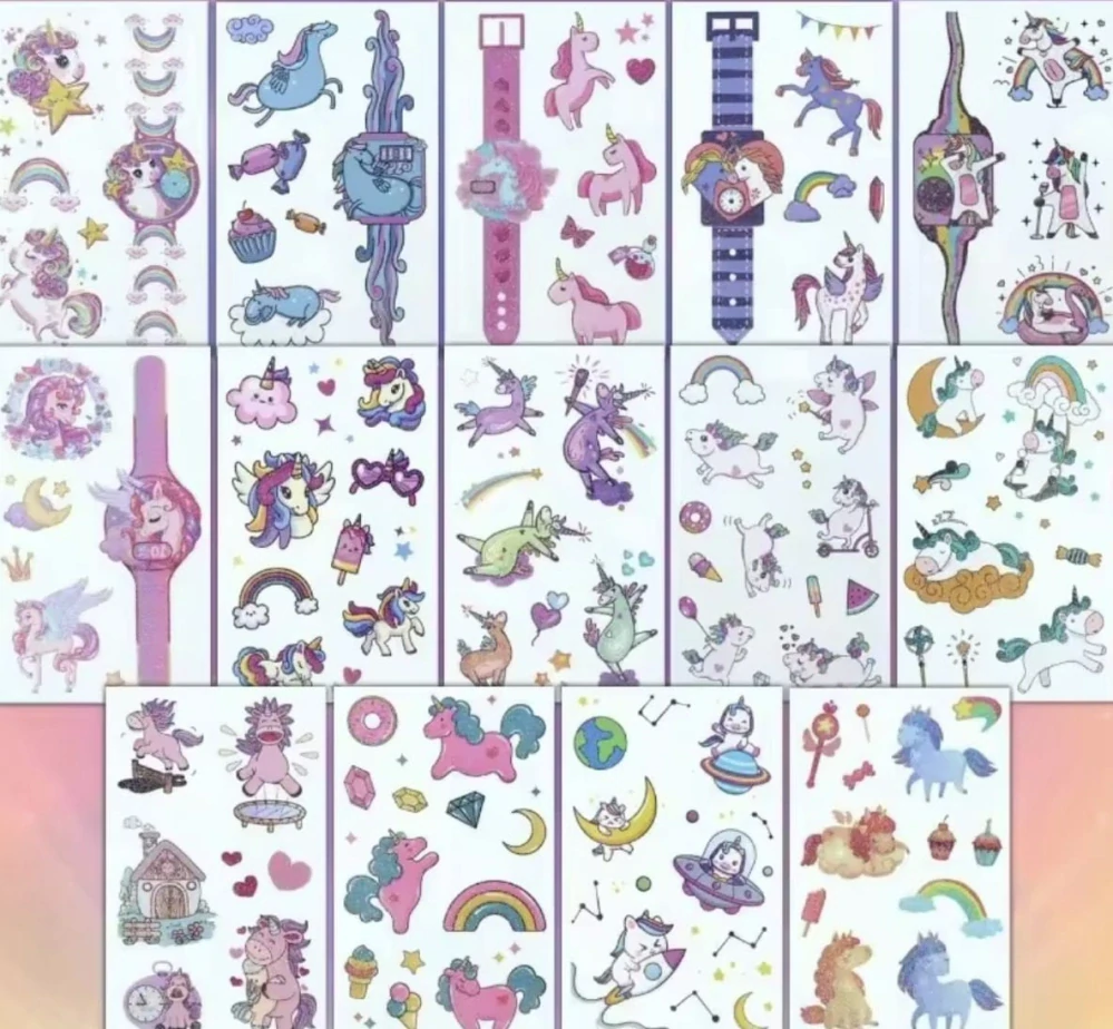 - Dětské dočasné tetování - JEDNOROŽCI - metalické - 14 ks