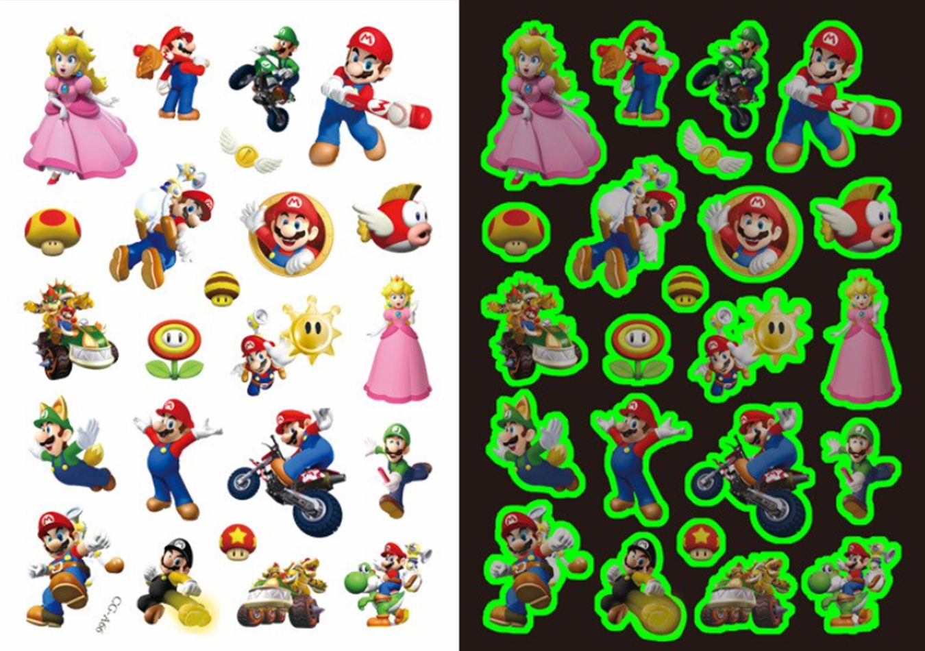 Dětské dočasné tetování - SVÍTÍCÍ VE TMĚ - SUPER MARIO BROS. 2