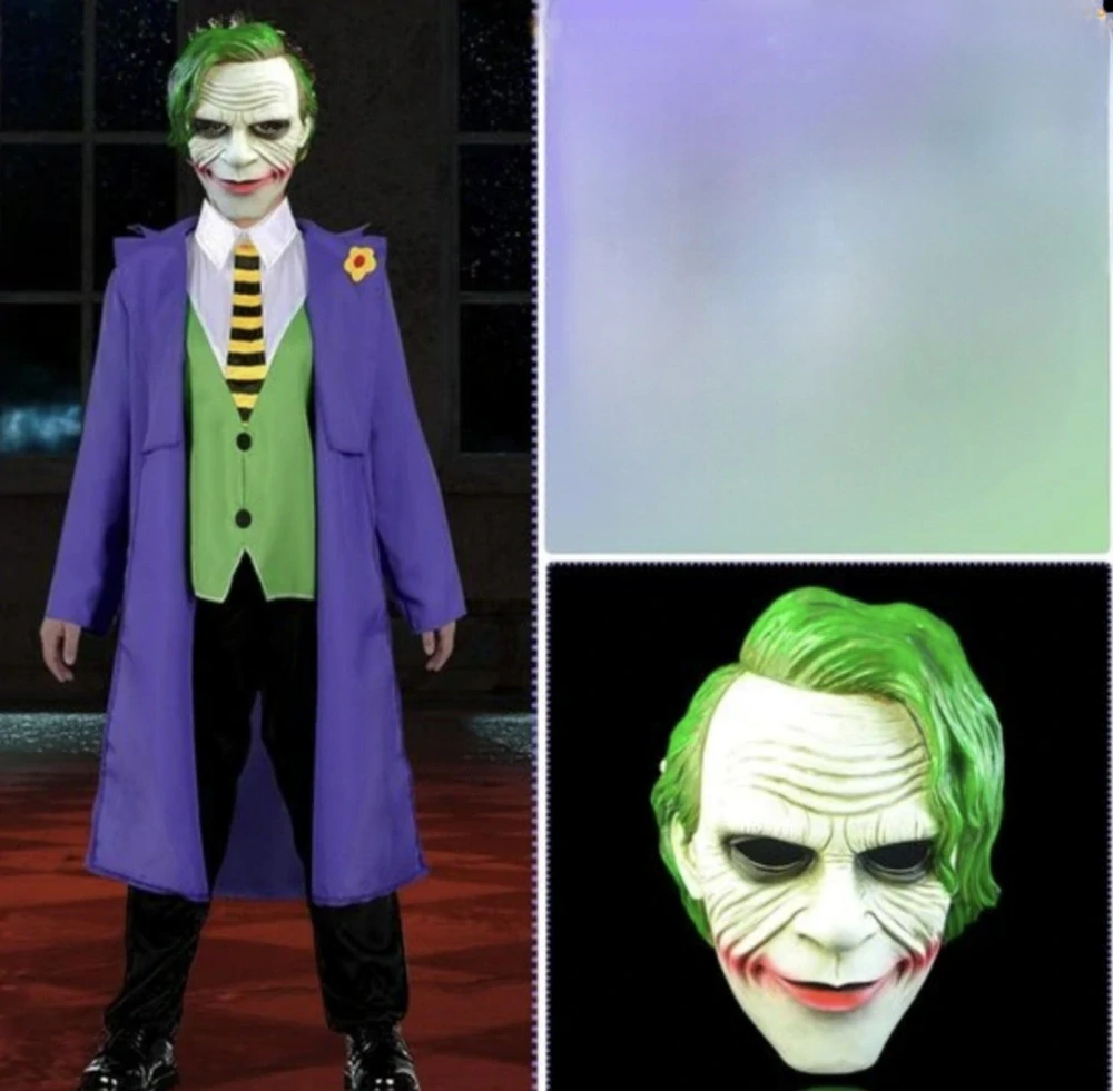 Kostým obsahuje sako, košile bez rukavů, kalhoty a plastovou masku.