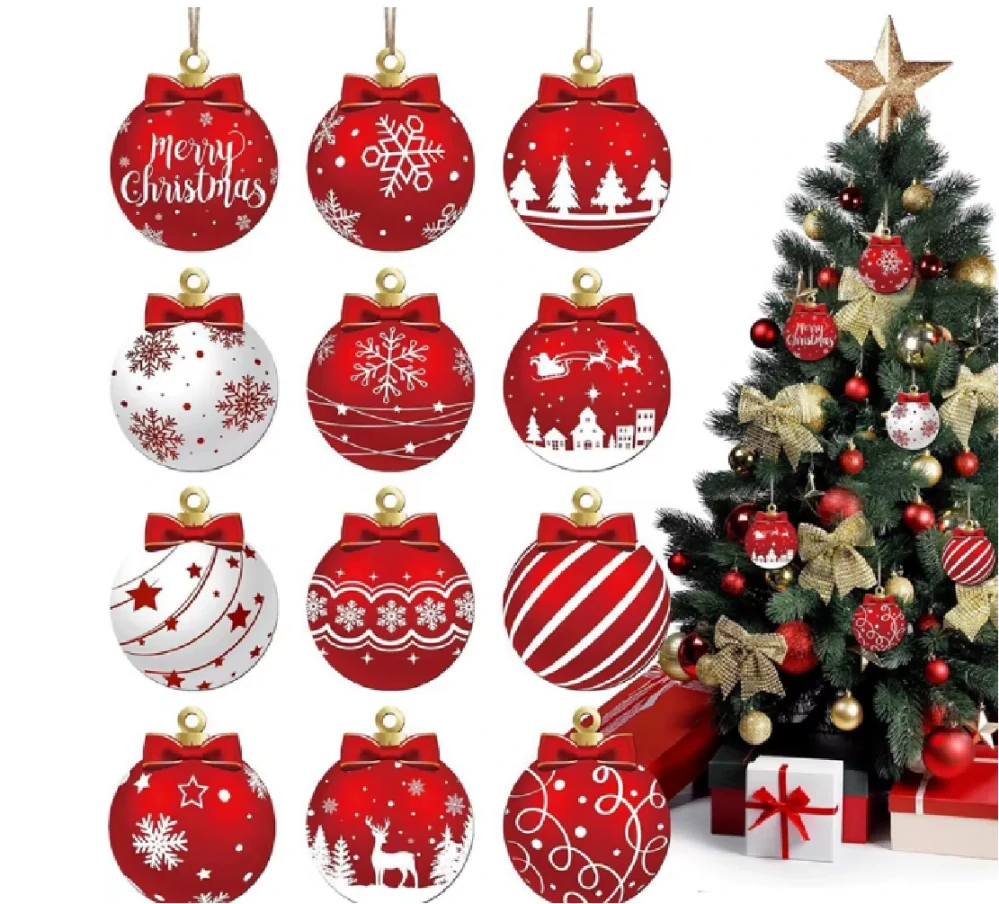 Dřevěné vánoční ozdoby na stromeček - ČERVENÉ