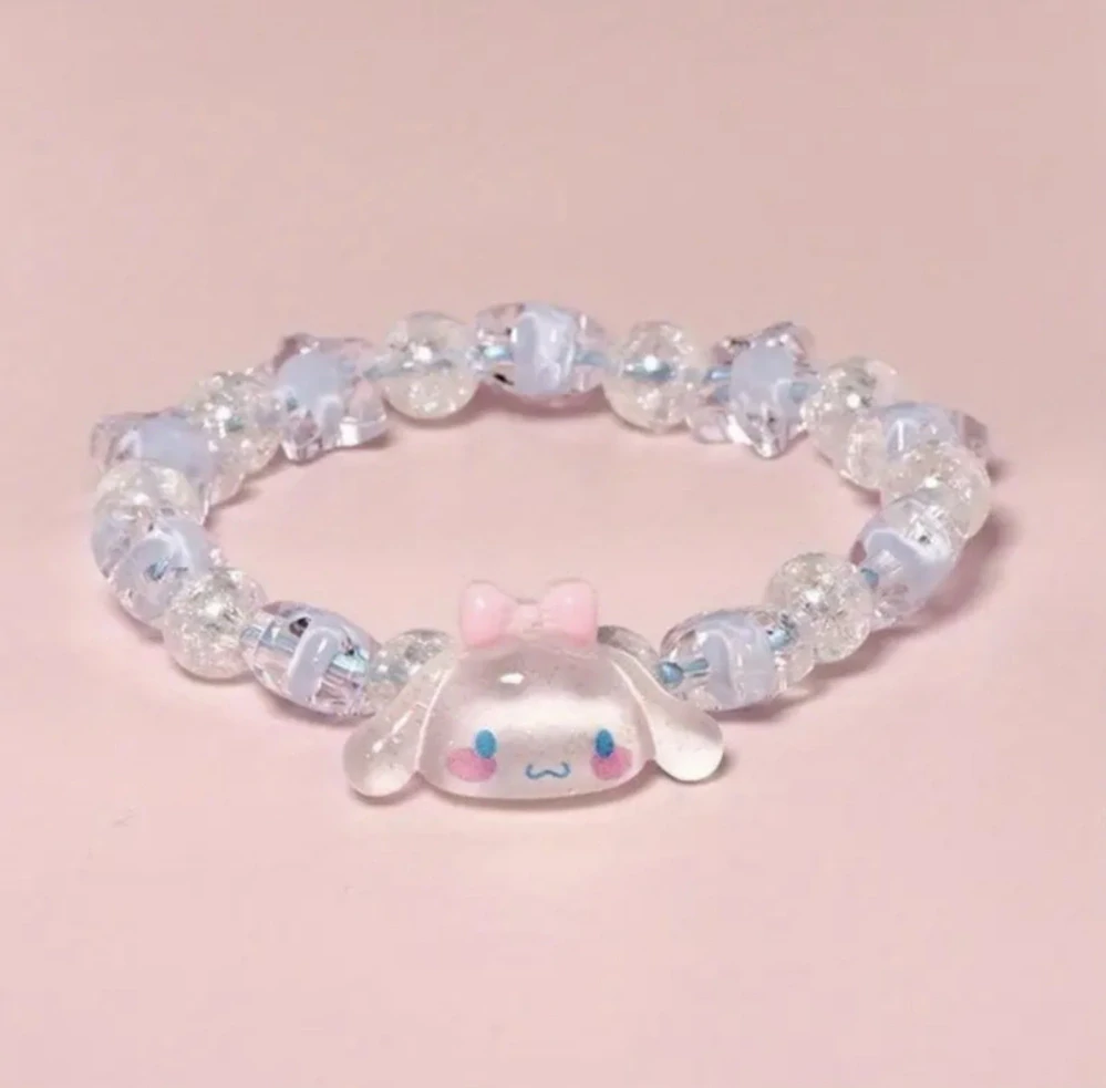 Krásný korálkový náramek na gumičce se Cinnamoroll z pohádky Sanrio.