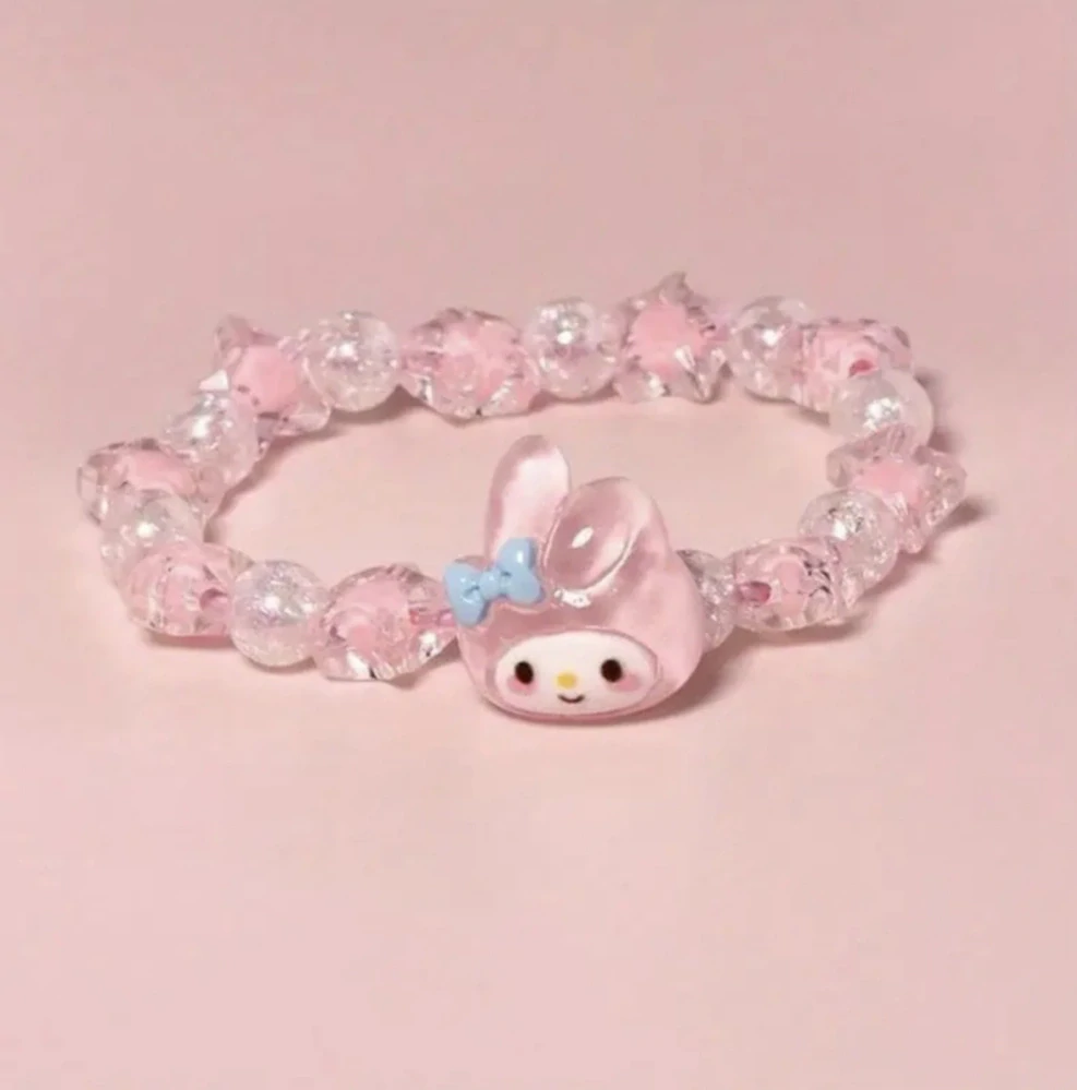 Krásný korálkový náramek na gumičce s Melody z pohádky Sanrio.