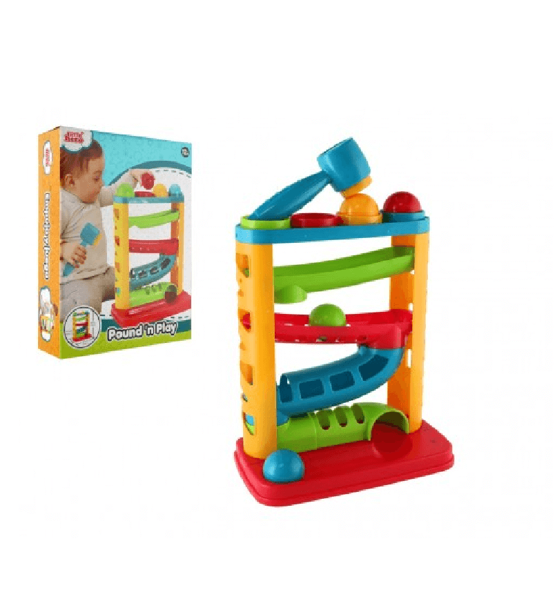 Klasická barevná interaktivní zatloukací dráha pro kuličky, kterou si děti oblíbí.