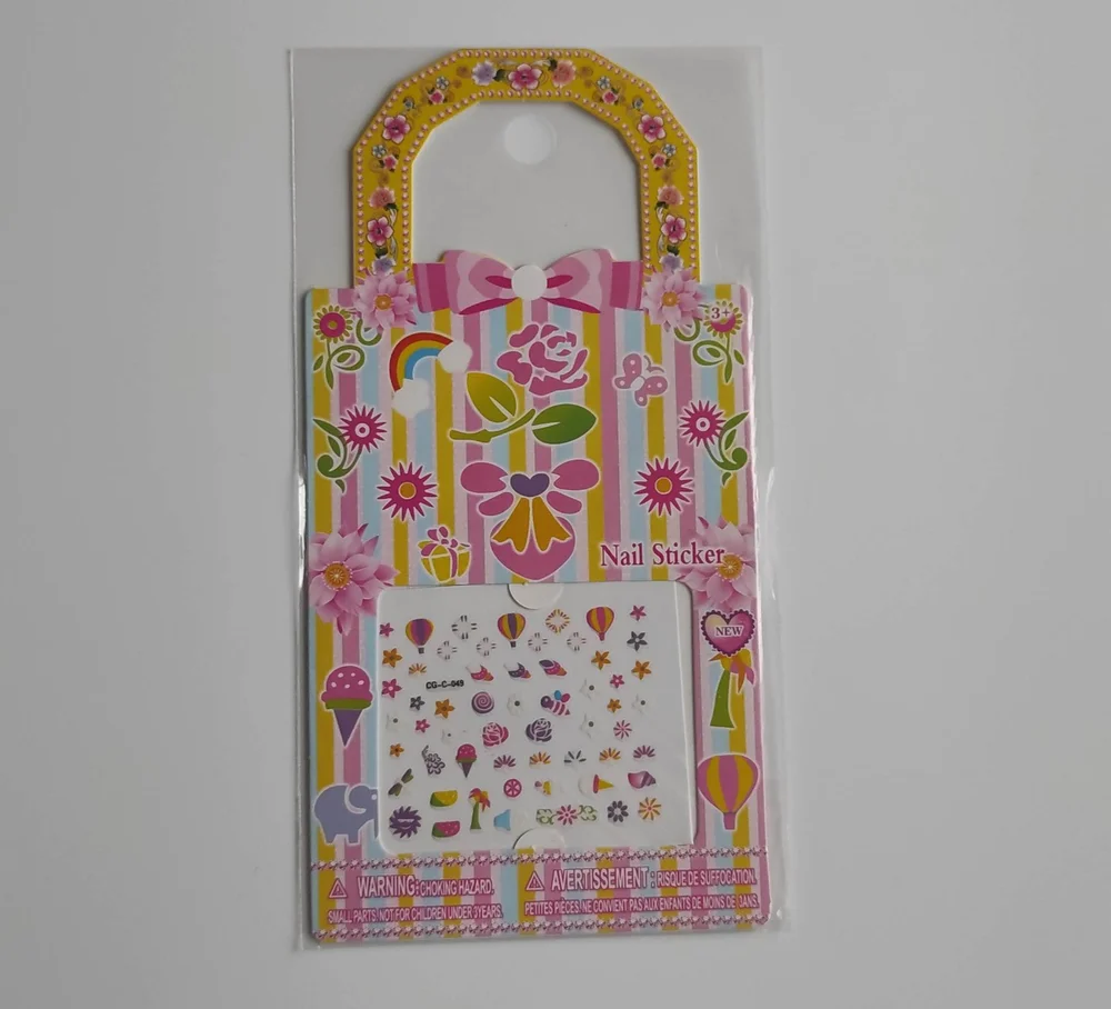 Balení obsahuje 1 arch na kterém je 30 kusů nálepek na nehty o velikosti 6,5 x 5,5 cm.