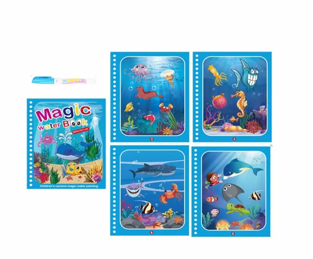 Obrázky se po nanesení vody zbarví, a až voda zaschne, opět zmizí a můžete malovat znovu.