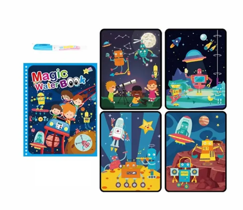 Obrázky se po nanesení vody zbarví, a až voda zaschne, opět zmizí a můžete malovat znovu.