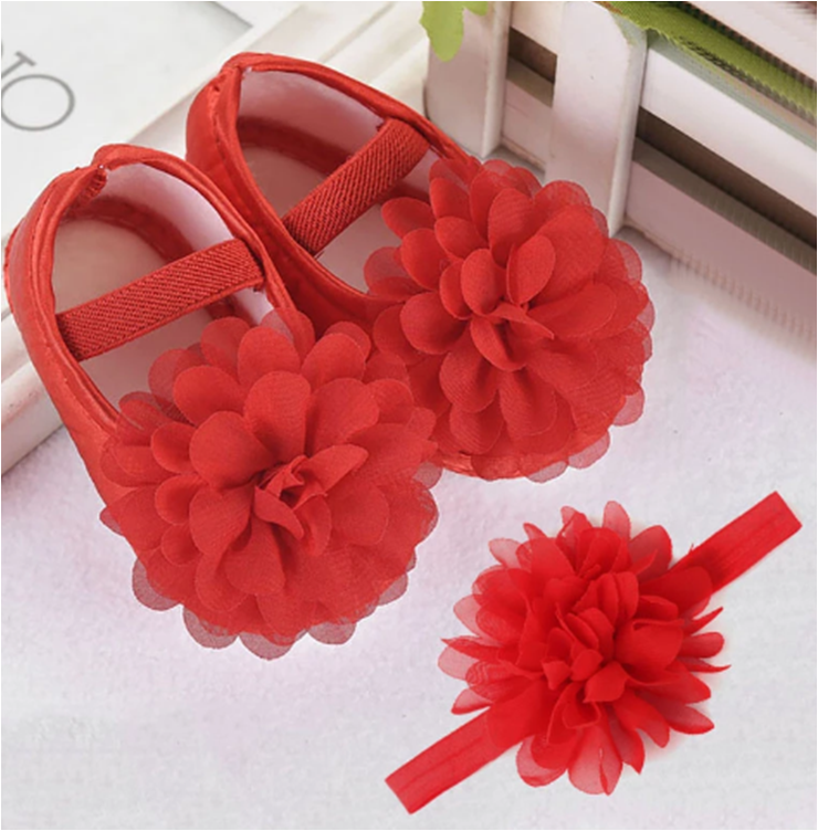 Set balerínky+čelenka - ČERVENÉ (0-6m)
