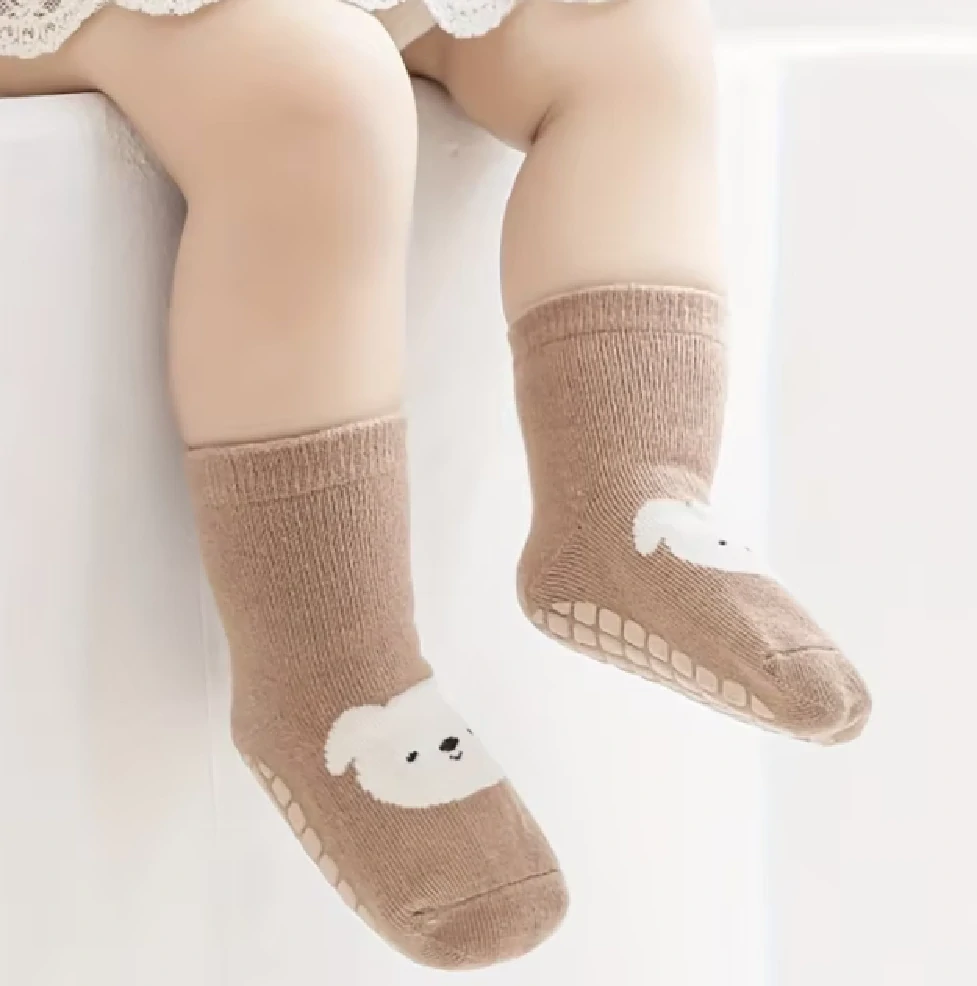 Teplé protiskluzové ponožky - HNĚDÉ - PEJSEK - (12-36m) M