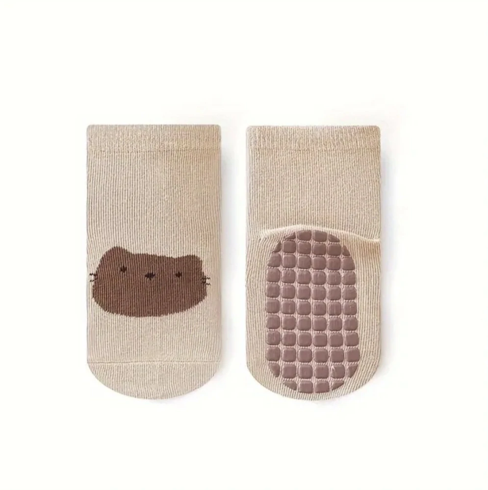 Protiskluzové ponožky - SVĚTLE HNĚDÉ - KOČKA - (3-5 let) L