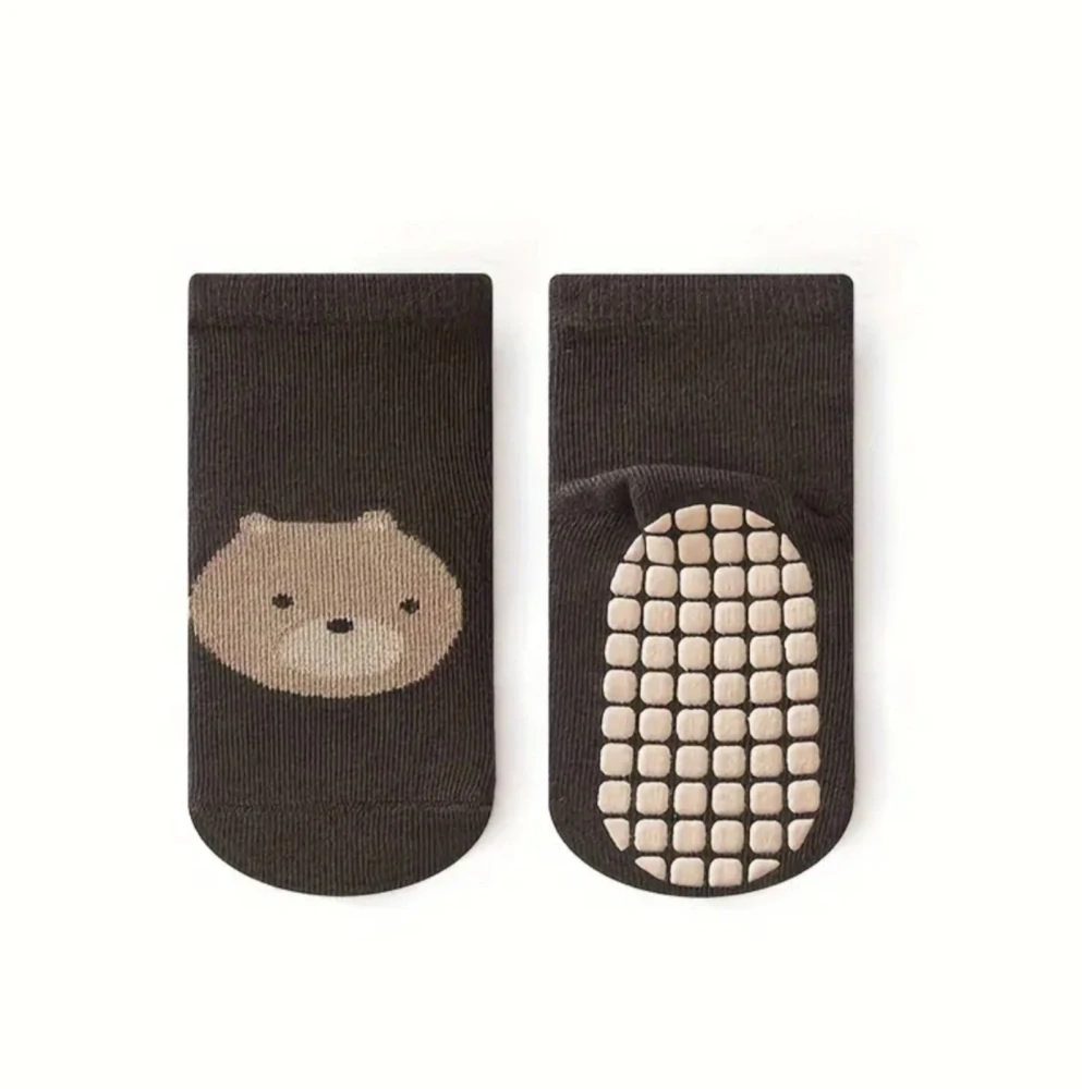 Protiskluzové ponožky - TMAVĚ HNĚDÉ - MEDVÍDEK - (12-36m) M