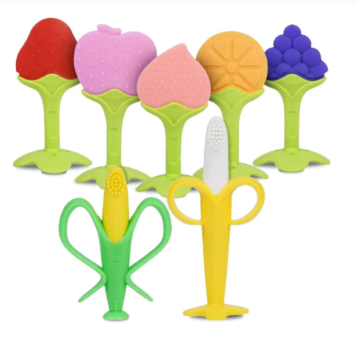 Texturované povrchy pomáhají při masáži dásní, zmírňují nepohodlí a napomáhají vzniku nových zubů.