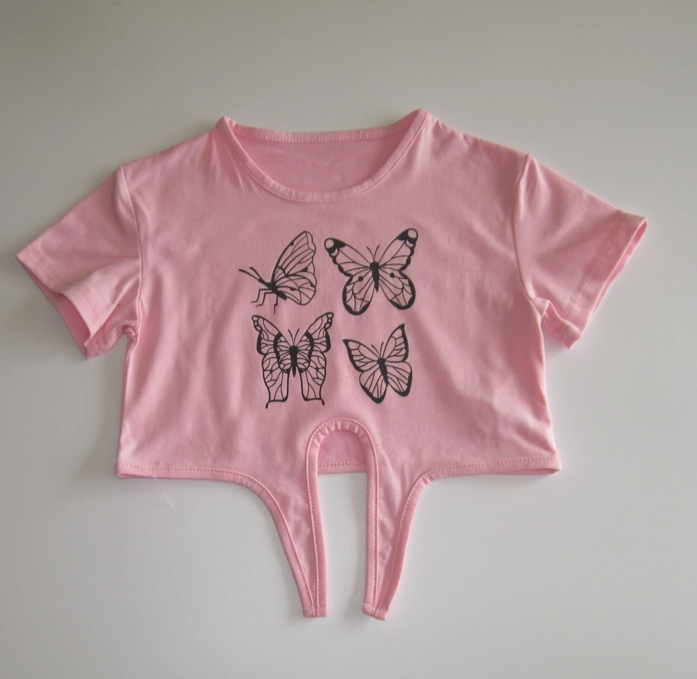 Krátké tričko do pasu s potiskem motýlků.