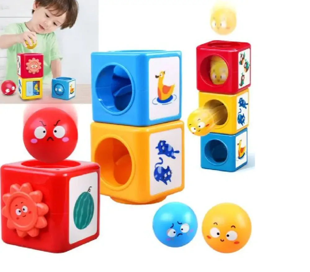 Do kostek lze vhazovat barevně označené míčky, aby se vaše dítě seznámilo s koncepty gravitace a setrvačnosti.