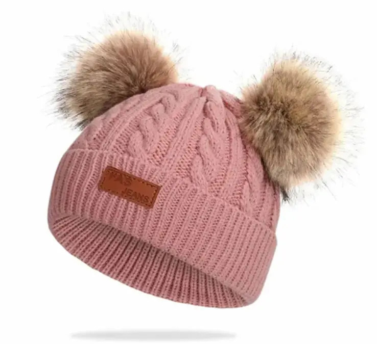 Pletená čepice s dvěma bambulemi.